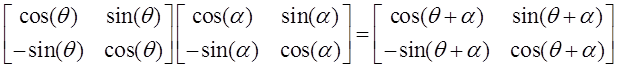 به کمک یک سری اصول مثلثاتی میفهمیم که در واقع ضرب این دو ماتریس برابر با ماتریس دوران جمع زاویه این دو.